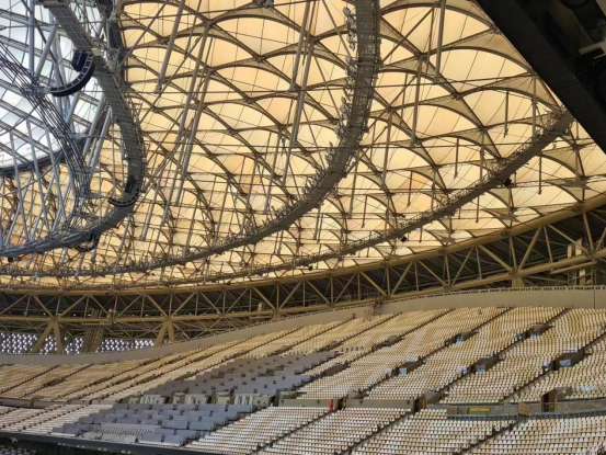 卢塞尔体育场(Lusail Stadium)坐落在距离多哈中心20km处的卢塞尔新城,其灵感来自于阿拉伯传统灯笼(Fanar Lantern)光影交错的图案。而球场的外形和外立面则呼应了卡塔尔传统的金碗和其它器皿上复杂的装饰,这是阿拉伯和伊斯兰世界艺术和工艺黄金时代的突出特征。