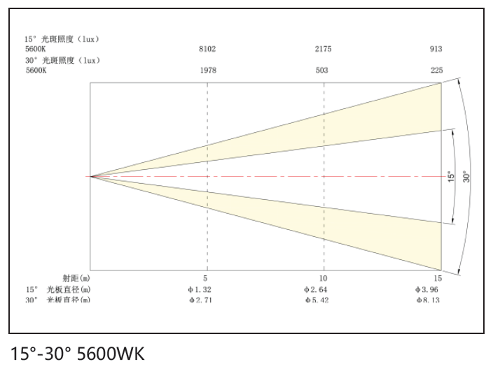 中心照度:913Lux/15米 15°(1530)